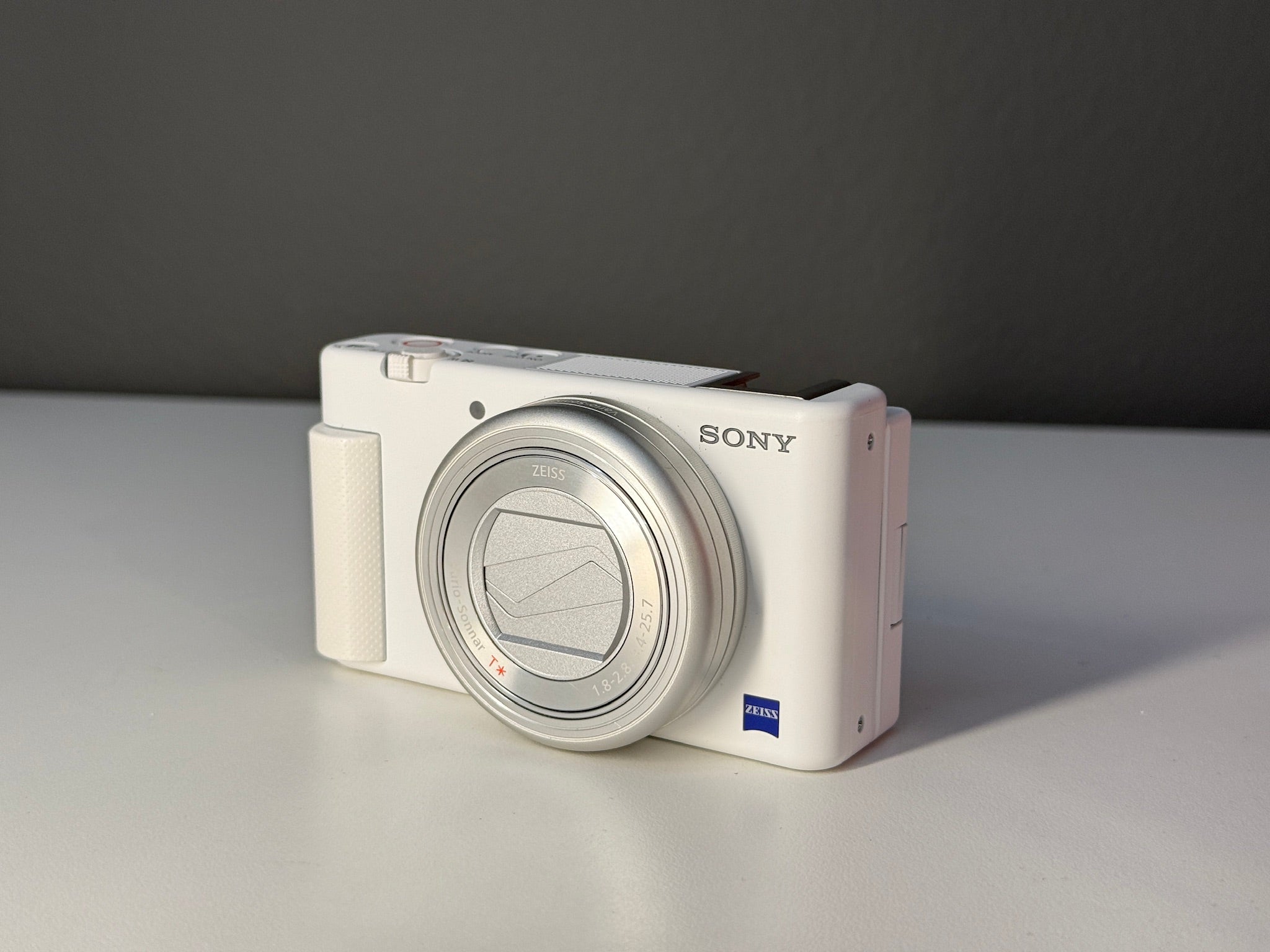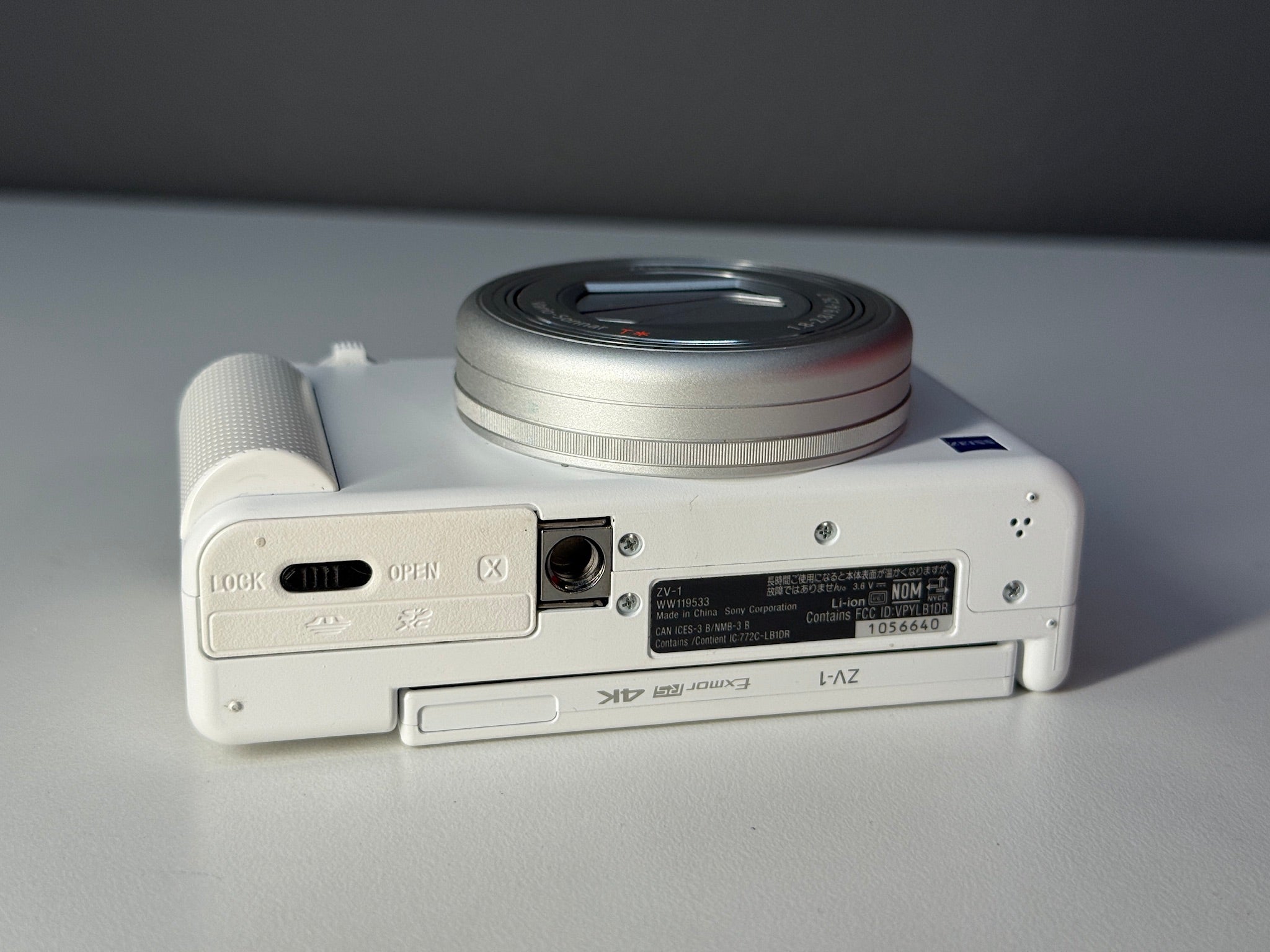 This is the original Sony ZV-1, still a very capable camera. My only complaint about this camera is the position of the tripod screw means you can't mount it and also keep the battery door open for a DC coupler. I'll include a third party mount for the bottom that makes it so you can keep the battery door open while this is mounted on a tripod.
